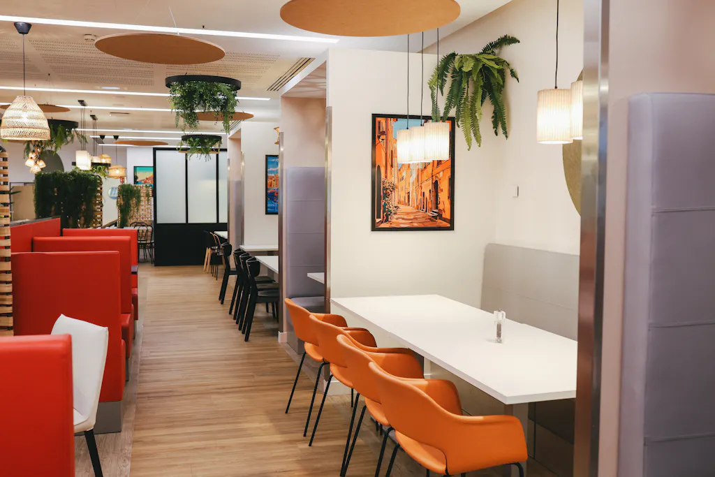 Pensée comme un véritable lieu de vie, la Trattoria invite les salariés à un voyage culinaire au cœur de l’Italie, sans quitter Nanterre. Inspiré des trattorias italiennes, ce restaurant d’entreprise conjugue convivialité, générosité et plaisir des sens, autour d’un produit emblématique : la pizza artisanale.