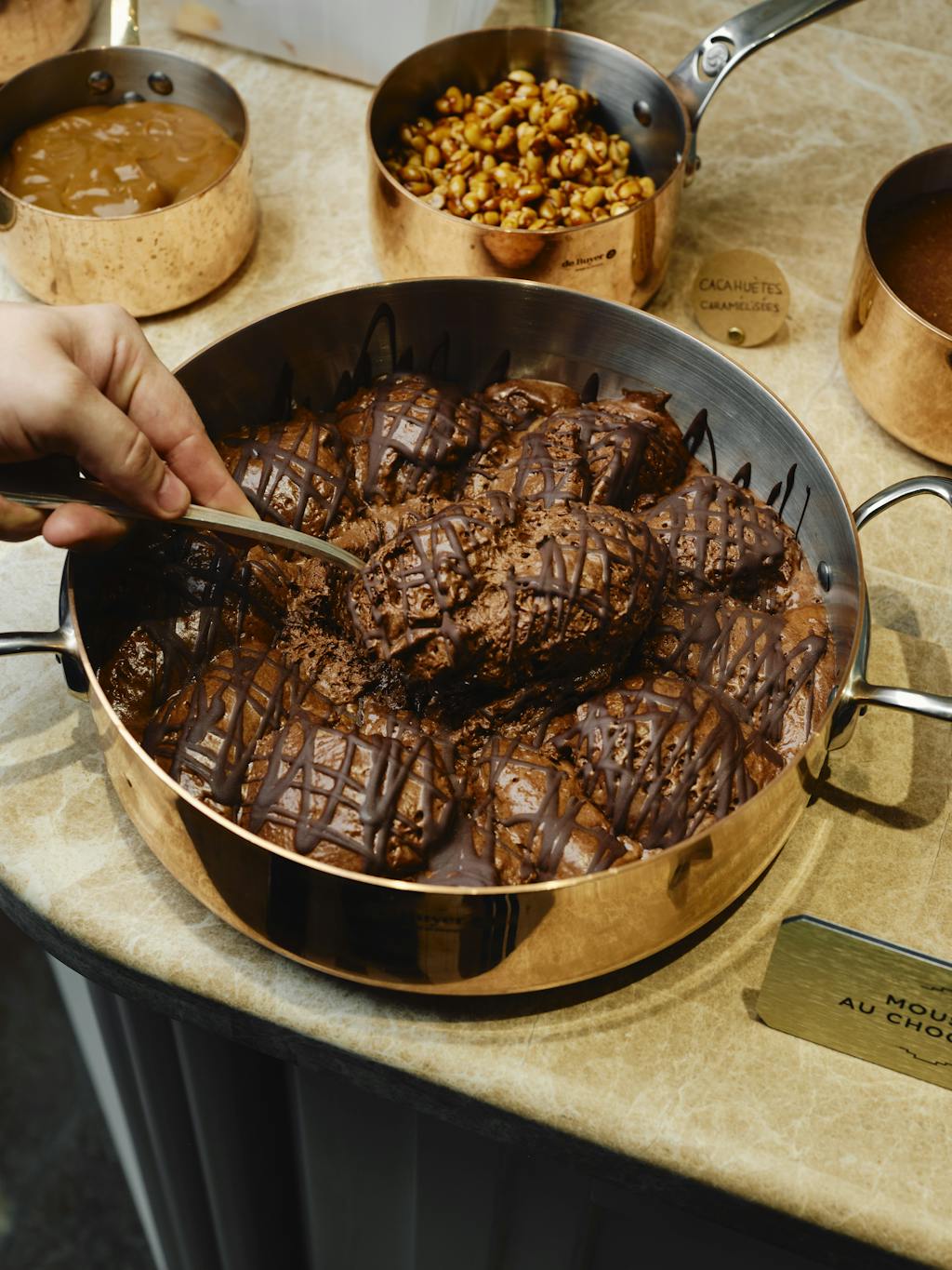 Volaille fondante, gnocchis, kebab maison, spécialités végétariennes, une sélection de vingt-cinq fromages : Le buffet est composé de cuisines bistrotière, renouvelées tous les trois mois au fil des saisons. Les produits viennent exclusivement de producteurs engagés, majoritairement d’Île-de-France et de circuits courts, bio et sourcés avec exigence. Les viandes arrivent entières, chaque morceau est utilisé, rien n’est perdu. Les portions sont pensées en petites assiettes : on se ressert, on circule, on choisit, on compose, tout en mesurant l'étendue de sa faim. Le gaspillage en cuisine comme du côté consommateur n’est donc pas une option.