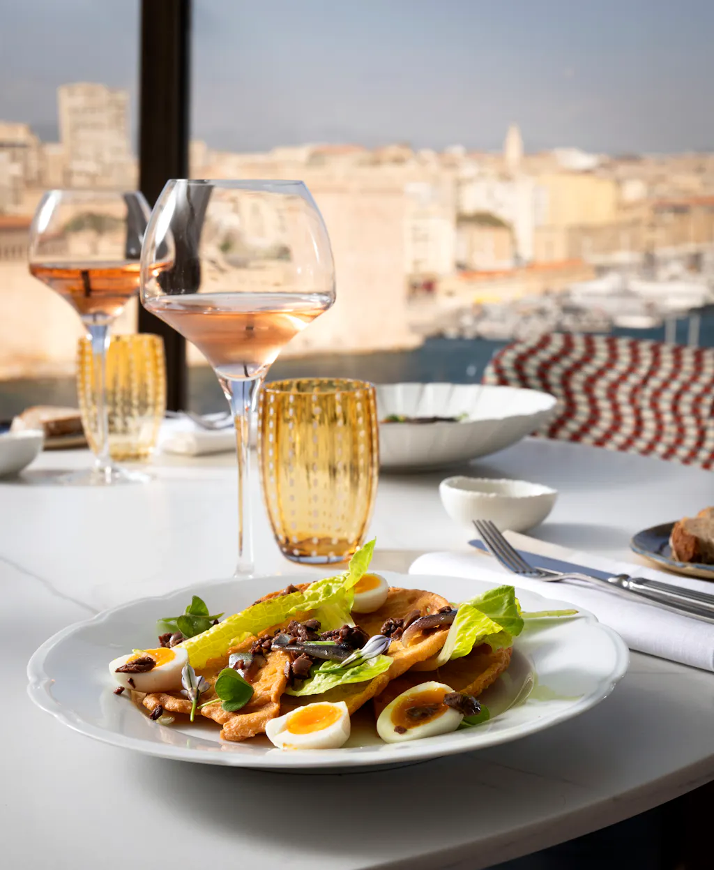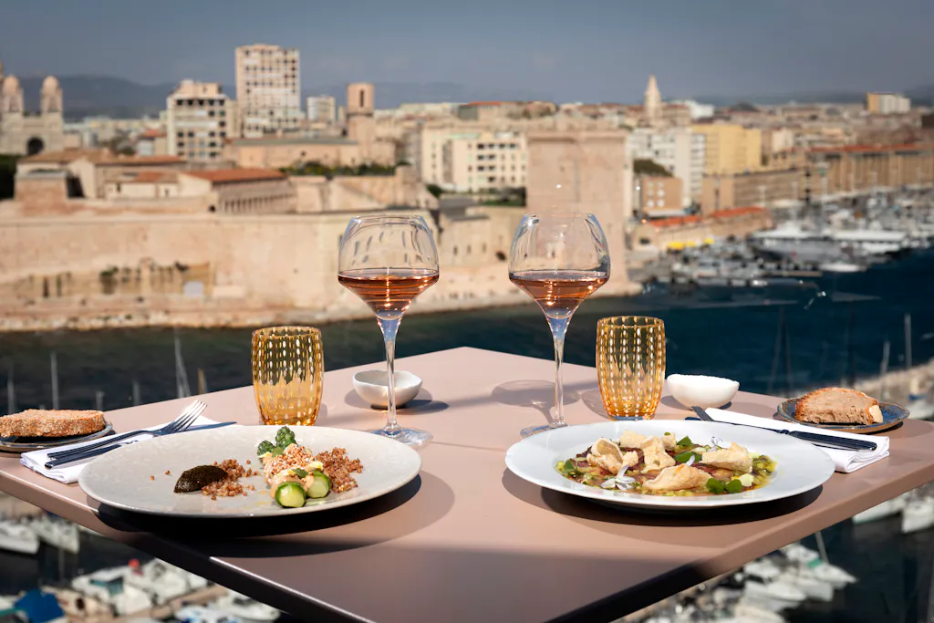 Comme un phare au sommet du Sofitel Marseille Vieux-Port, les Trois Forts surveillent la Méditerranée. La vue n'est pas qu’un décor, c'est la préface de tout ce qui se passe en cuisine.