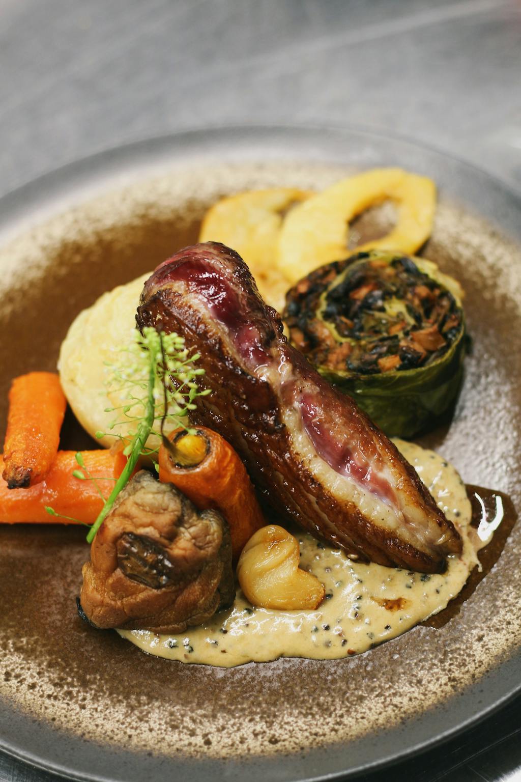 - Tourte aux pleurotes et shitaké du Mas d’azil, fromage de montagne épinard à la crème ;