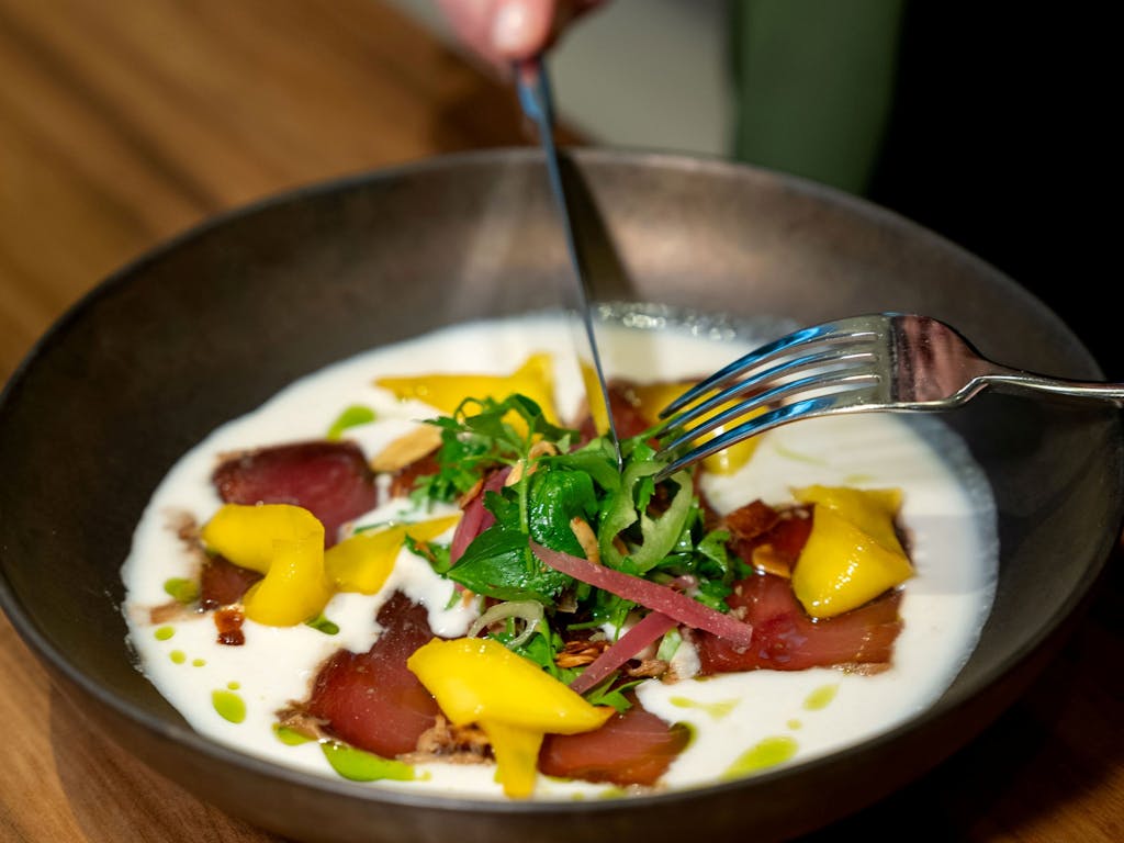 "Tout commence par le produit : hommage au travail passionné de celles et ceux qui le cultivent. Notre cuisine, fraîche, lisible et ancrée dans la tradition, célèbre leur savoir-faire et leur générosité"