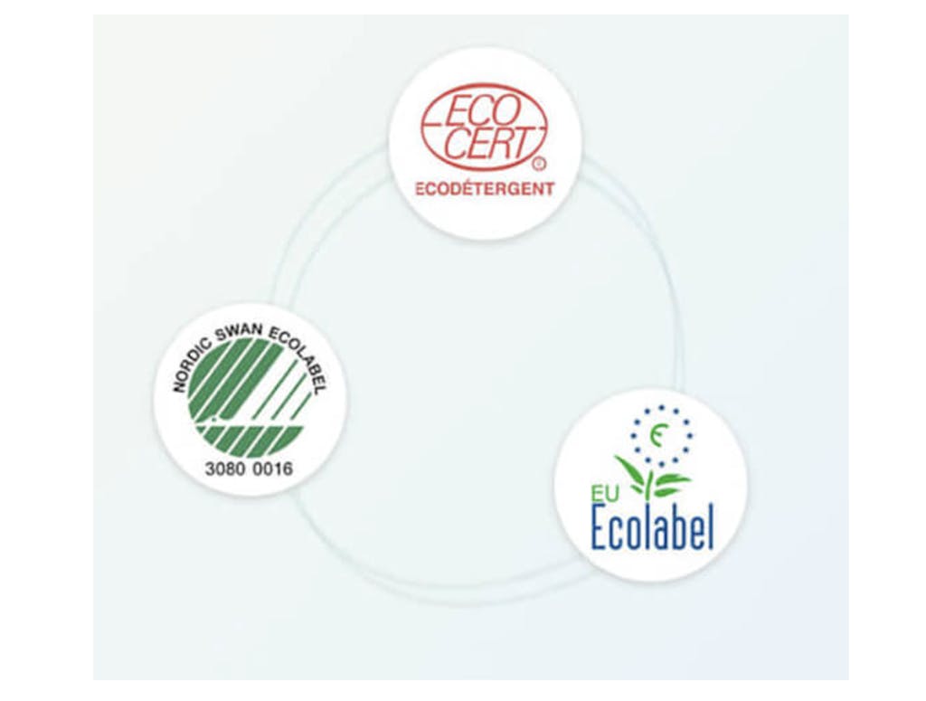- Nordik Swan : un écolabel qui labellise les produits d’entretien ayant nécessité une utilisation rationnelle des ressources, une économie circulaire non toxique et un choix de composants réduisant l’impact sur la biodiversité et la santé des consommateurs.