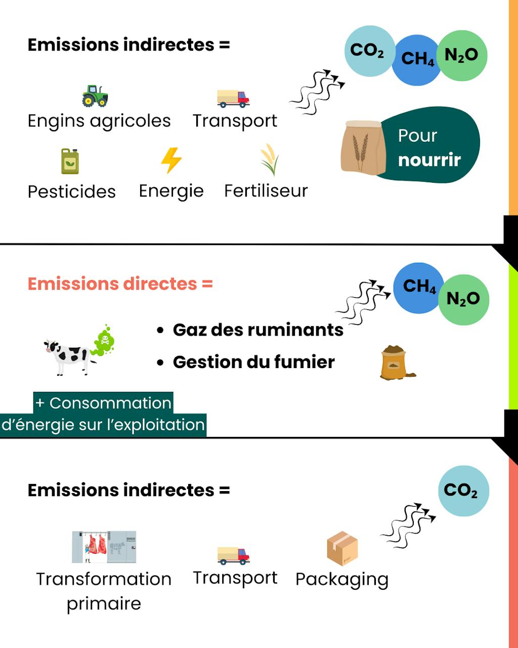 Le rapport Pathways towards lower emissions (FAO) révèle que l’élevage est responsable d’émissions variées : environ 31 % de CO₂, 54 % de méthane et 15 % de protoxyde d’azote. Le méthane possède un pouvoir réchauffant 27 fois plus élevé que celui du CO₂, le protoxyde d’azote, lui, l’amplifie 300 fois plus.