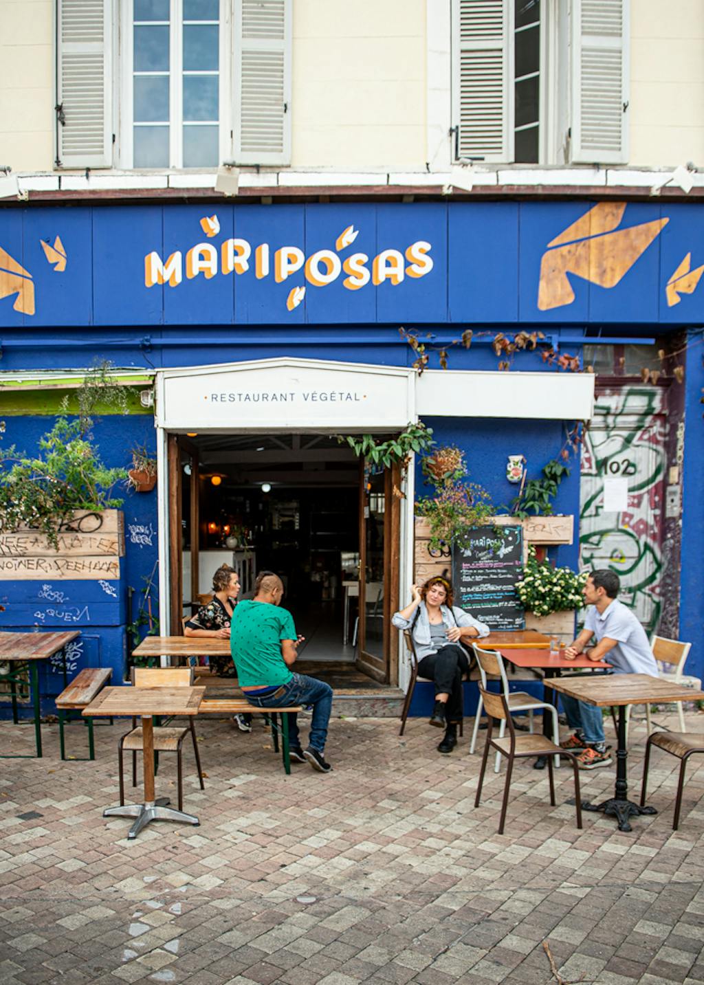 Enfants d’agriculteurs vénézuéliens, Alexis et Shéhrézade ont décidé de lancer un restaurant 100 % végétal sur le Cours Julien à Marseille. La cheffe du Mariposas, passée par plusieurs restaurants gastronomiques à Caracas et chez Sol Semilla à Paris, propose une cuisine intuitive centrée sur le légume. Les plats, tout aussi colorés que la vaisselle dépareillée dans laquelle ils sont présentés, créent une ambiance chaleureuse et accueillante. La carte des vins y est diversifiée et tout aussi bien sourcée.