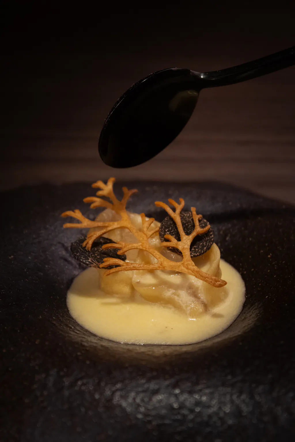 - truite de langeais ikejime sauce fumé de poissons ;
