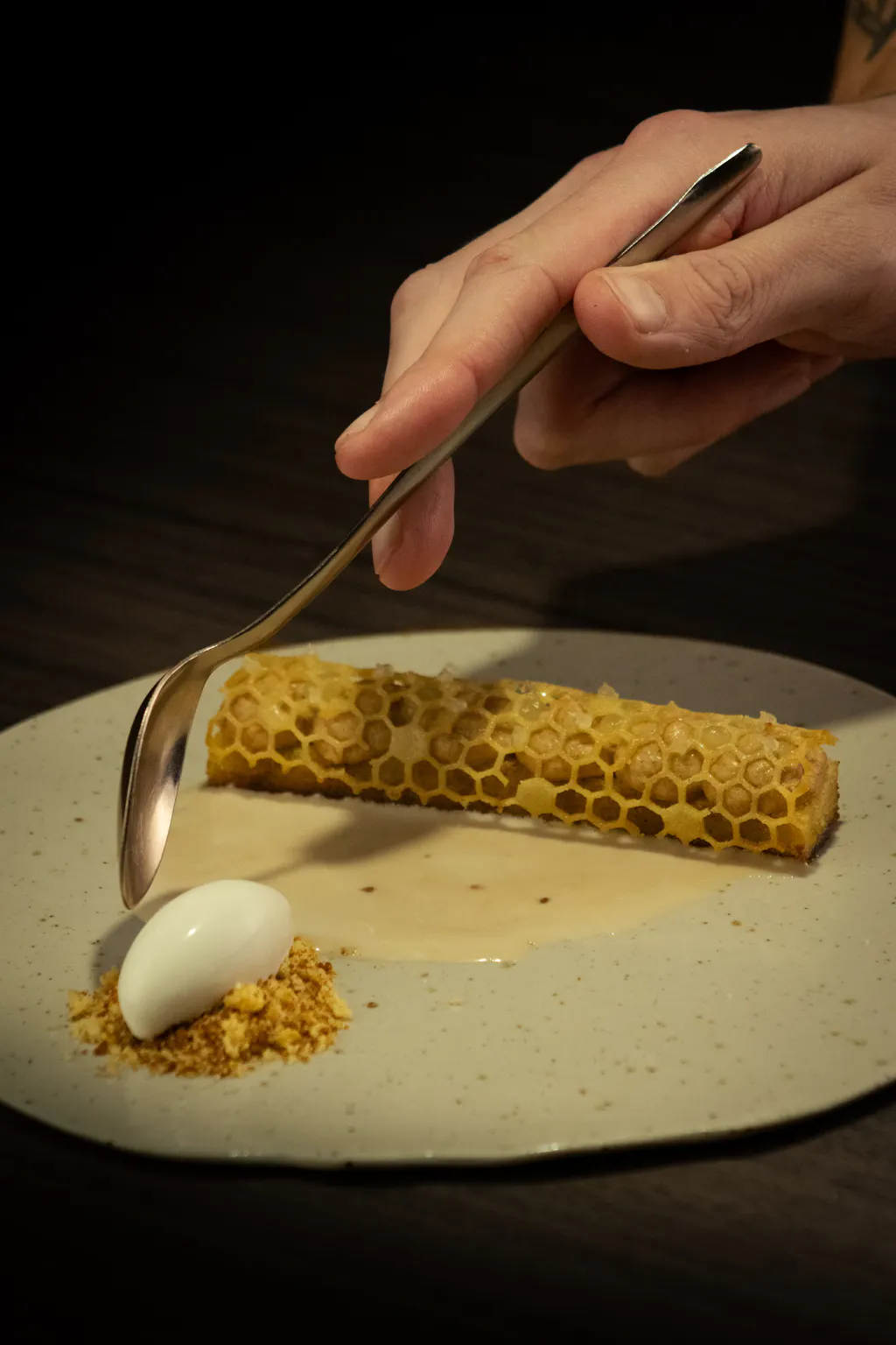 - asperge blanche à la bière, gin de fleurs sauvages et réduction de peaux d’asperges ;