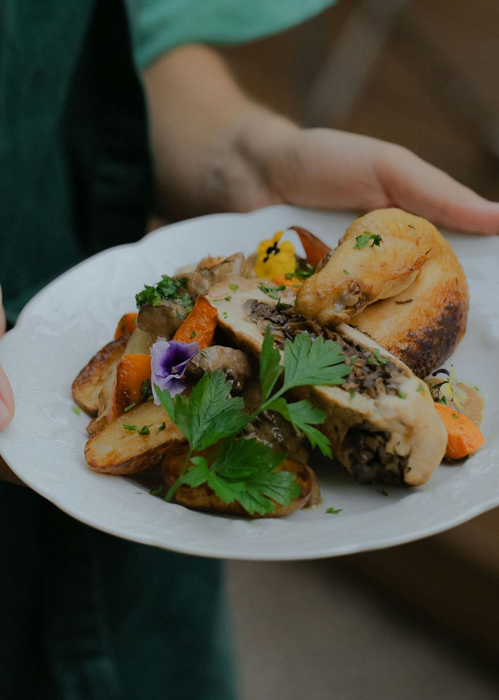 Chez Champs Libres, la cuisine suit le mouvement de la nature. Les saisons dictent les menus, les récoltes inspirent les recettes. La carte évolue au fil des arrivages, avec des fruits et légumes frais et goûteux.